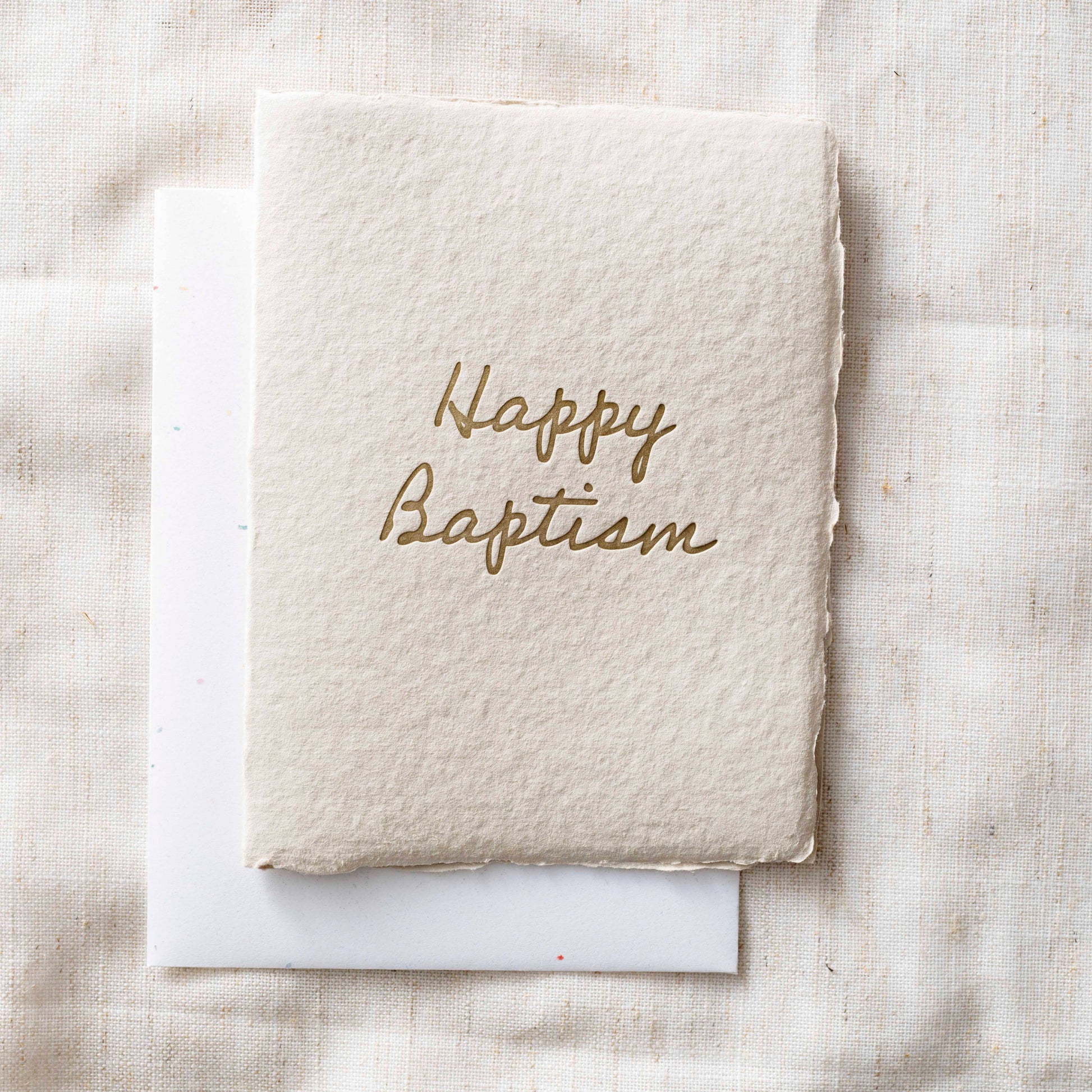 Our handmade deckled edge paper collection is letterpress printed in-house late at night with lots of coffee. This card is meant to be treasured for years to come. Handmade paper beautiful enough to frame and helps us ensure there was no slave labor in our supply chain.